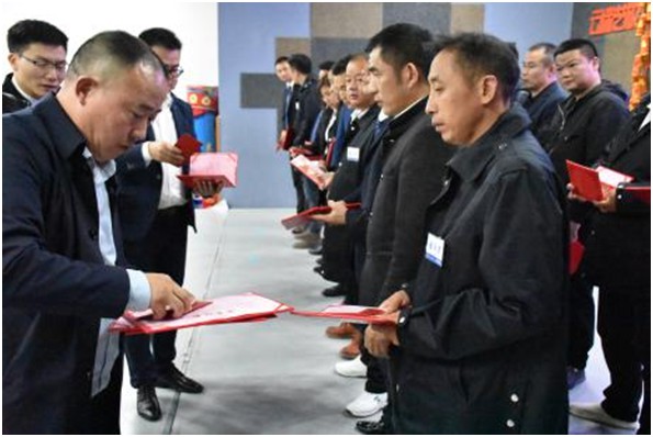 會(huì)議開始,集團(tuán)董事長(zhǎng)樂金紅先生宣讀了對(duì)張奪、楊文華、謝落心、劉鑫四位干部人事任命。