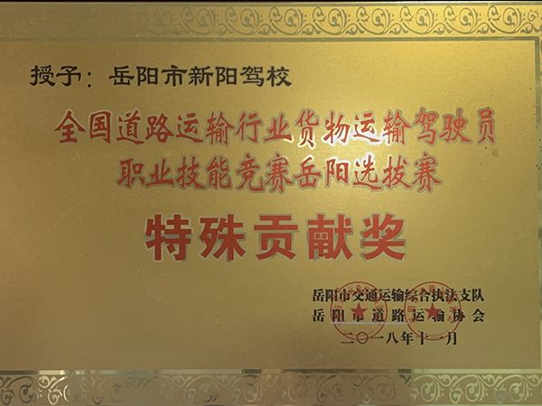 全國(guó)道路運(yùn)輸行業(yè)貨物運(yùn)輸駕駛員職業(yè)技能競(jìng)賽岳陽選拔賽特殊貢獻(xiàn)獎(jiǎng)